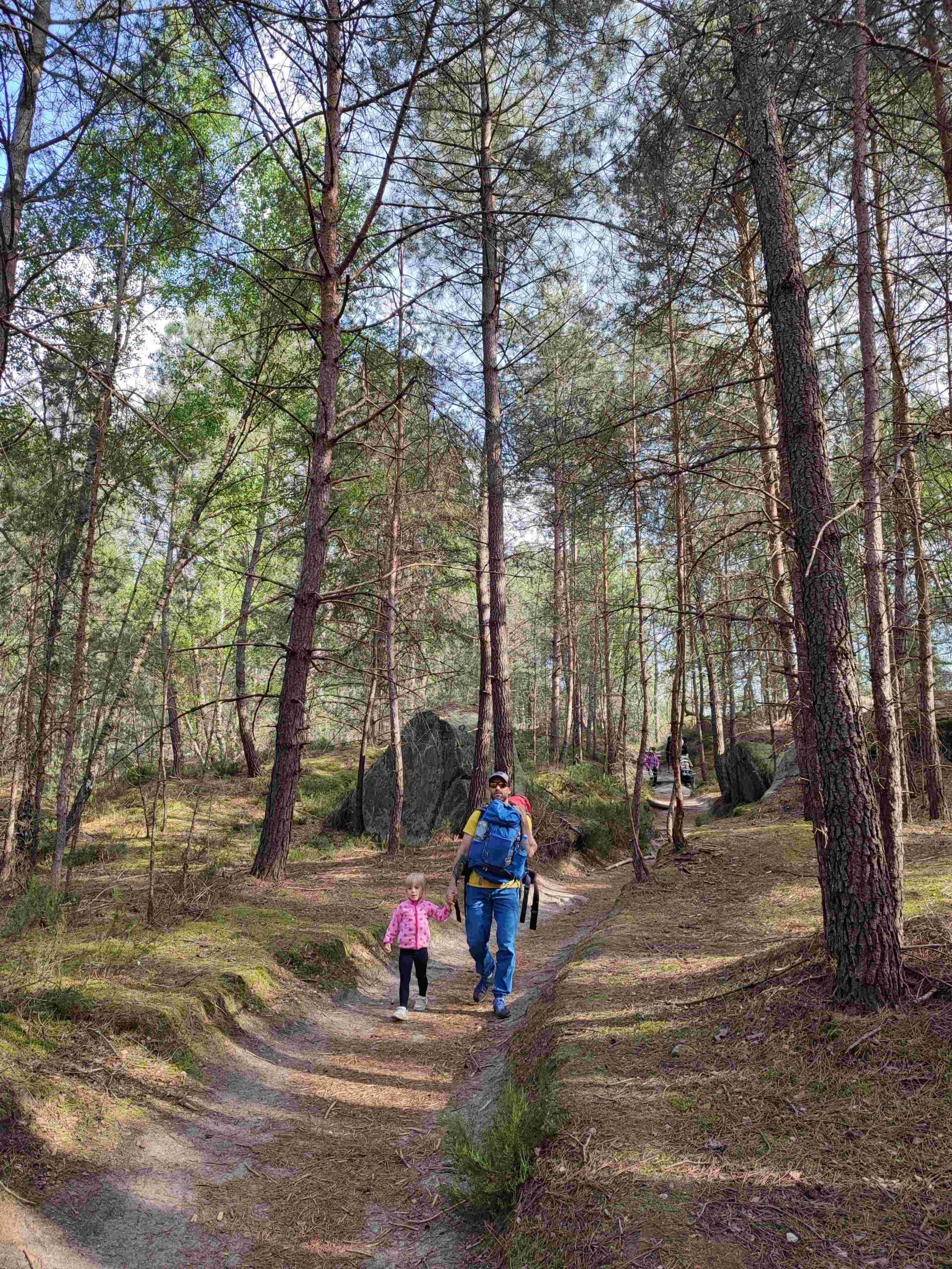 Jak wspomniałam wyżej podejście pod skały z parkingu zajmowało, zależnie od rejonu do 20 minut i mam tu na myśli poruszanie się rodziców obładowanych plecakami, crashami, za rękę z czterolatką i niespełna roczniakiem w joggerze.
